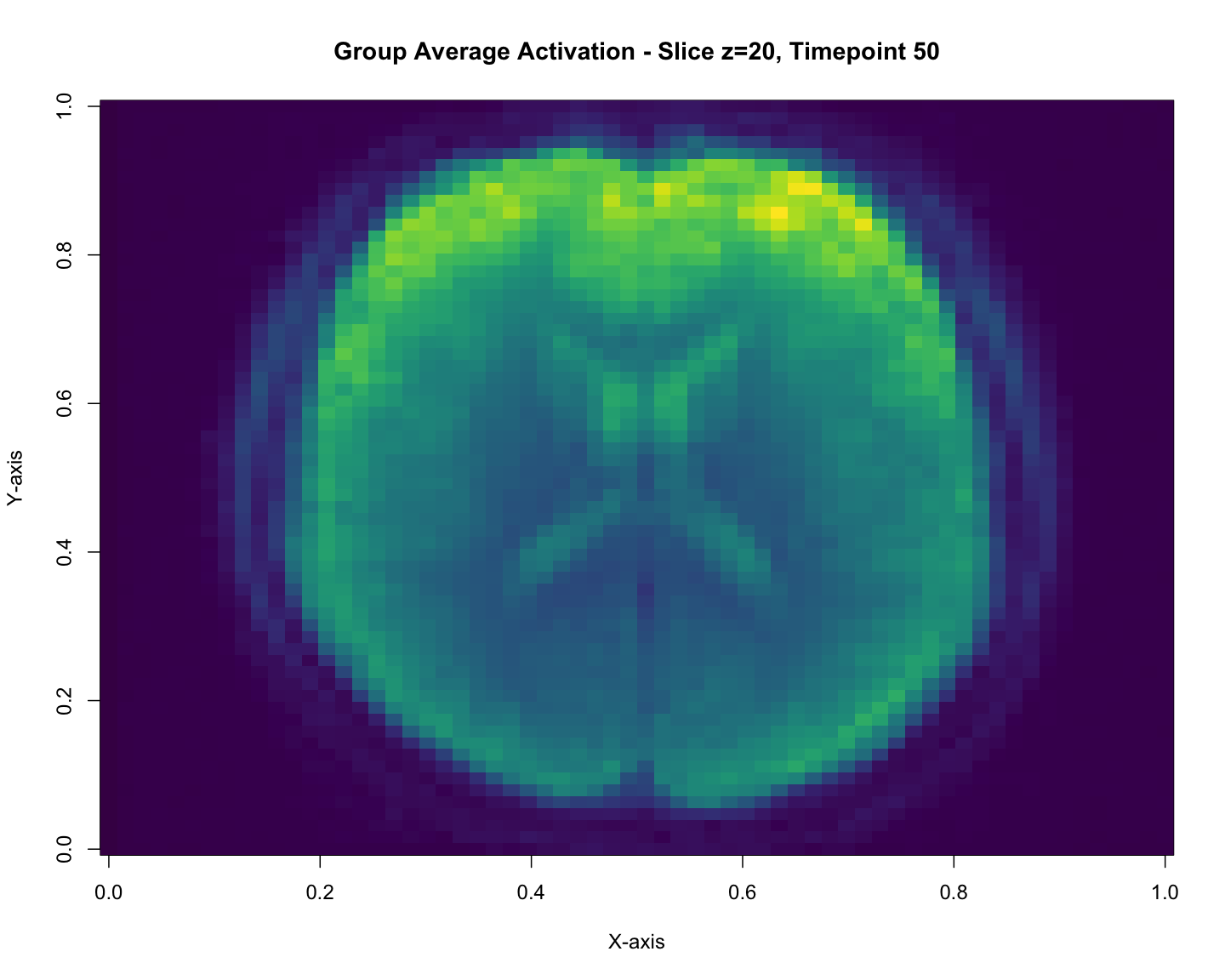 main = "Group Average Activation - Slice z=20, Timepoint 50",